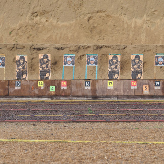 Temp 11 Degrees - 15 Degrees Wind 0mph - 2mph left to right. Distances: 300, 200, 100yds (Short Range Match & Whitehead Match) 100, 75, 50, 25yds (Urban Contact Match) After the mandatory Range Briefing courtesy of Peter Cottrell and Martin Camp, shooting got underway. Firing details A & B, E & F got the pleasure of shooting their respective matches (SR & UCM) in the rain, the rain itself was fairly constant and typical of Bisley it stopped pouring down just as these first matches finished, the sun then began to shine through. With some fortune, the wind stayed away, on occasion it did blow a little but nothing to write home about, almost negligible, so shooting was pure elevation adjustments and skill! This first event is challenging as two of the three shoots are dynamic, meaning the shooter fires all 4 or more stages in one go without a swap for the second firer. Skills are tested as these shoots test positional techniques under stressful timed stages, typically with some run downs between distances. Always a favourite of the shooter!